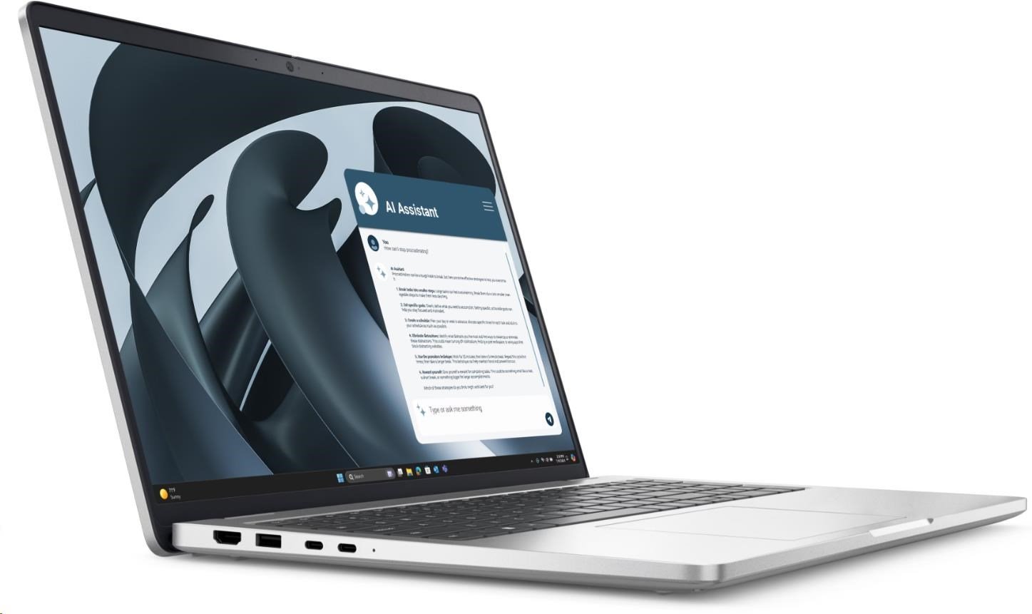 16" Full HD+ IPS displej nabízí antireflexní úpravu pro pohodlnou práci i v jasném prostředí. Lehká hliníková konstrukce s profesionálním vzhledem umožňuje snadné přenášení. Klávesnice je podsvícená a obsahuje klávesu pro Copilot – AI asistenta pro každodenní úkoly.
