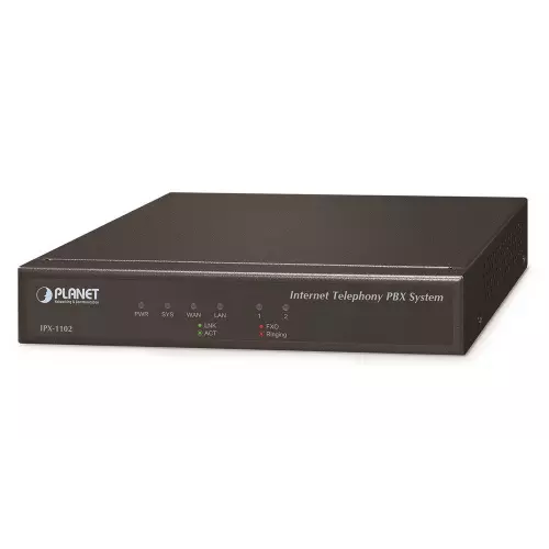 Planet IPX-1102, IP PBX, 2x FXO, 100/50 uživatelů, IVR, záznamník/hlas.pošta, DID, BLF, FAX, Skype-SIP, VPN