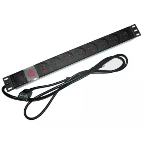 XtendLan 19"/1U rozvodný panel 8x 230V/10A, ČSN, vypínač, s přívodním kabelem k UPS IEC 320 C14