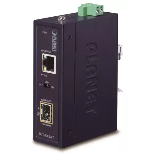Planet IGT-815AT konvertor 1x 100/1000Base-T,1x SFP 100/1000-X, ESD+EFT, IP30, -40 až 75°C, malý rozměr